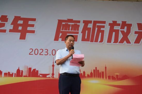 白晓全校长讲话,他祝愿同学们新的学年脸上有笑,眼里有光,心中有爱,脚下有远方,前进的力量。砺志奋发启新程,笃行不怠向未来。