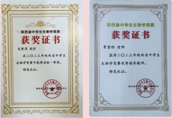 2023年全国中学生生物学联赛陕西赛区有2900多名学子参加考试,我校范曾淳同学脱颖而出。优秀成绩的取得,绝非一朝一夕之功,成绩背后凝聚着学生的辛勤付出和老师的悉心指导,也离不开班主任及学校领导的大力支持!