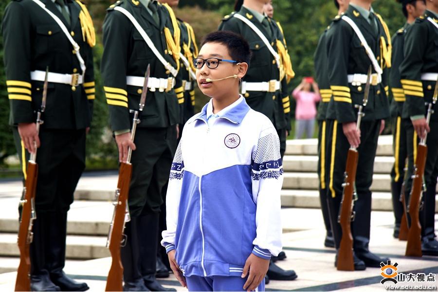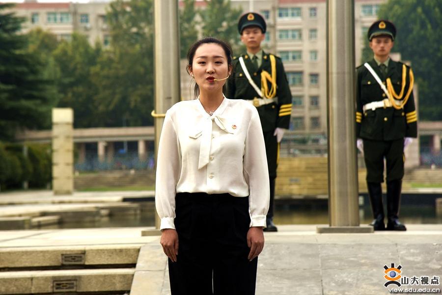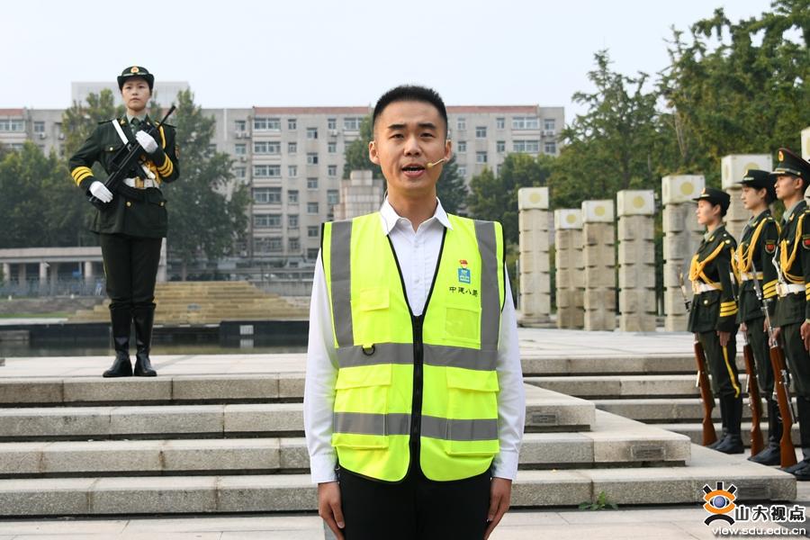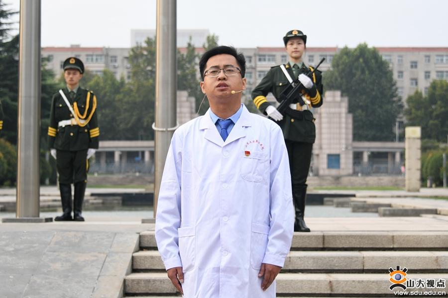在国旗下的演讲环节,山大附属中学初中部团员代表毛熙元,附属中学高中部团员代表丁翊萱,化学与化工学院2017级本科生高泽林,艺术学院2020级研究生李静,电气工程学院2019级研究生陈超超,第二医院脊柱外科医生赵杰,武汉雷神山医院突击队临时党支部书记、中建八局一公司安装公司党委副书记彭来雨,外国语学院团委书记朱蕾结合个人学习与成长经历,分享了自己的感悟。他们通过分享在抗击疫情与脱贫攻坚中的实践感悟,展现了山大青年的家国情怀与担当,代表山大青年为中华人民共和国成立71周年献上祝福。