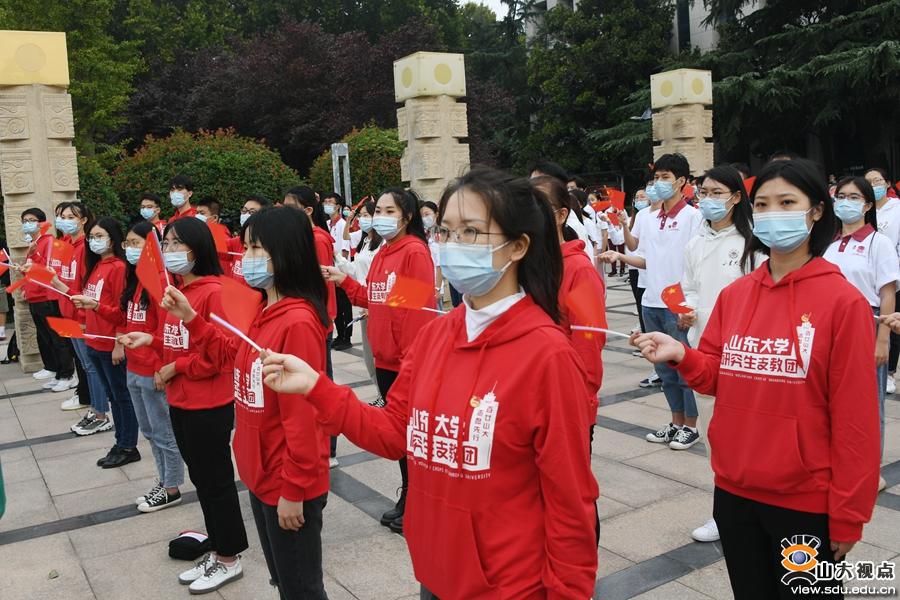 为庆祝中华人民共和国成立71周年,10月1日,在国庆节来临之际,山东大学在一校三地举办“弘扬抗疫精神 助力脱贫攻坚 展现青春担当”升国旗主题团日活动。山东大学党委书记郭新立出席中心校区活动,党委副书记王君松参加活动并寄语学校青年学子。