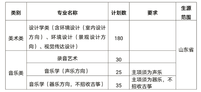 报考我校音乐学(声乐方向)、音乐学(器乐方向,不招收古筝)和录音艺术专业的考生须参加山东省2021年普通高等学校招生音乐类专业联考(山东师范大学平台)并且成绩合格。