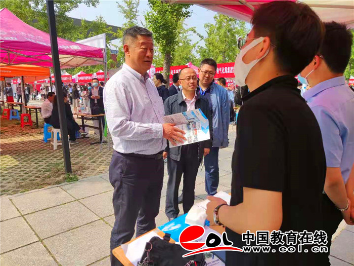 金宝搏188入口 讯5月12日上午,山东交通学院2021届毕业生春季双选会在长清校区文体馆北广场顺利开展。学校党委副书记、院长陈松岩亲临招聘现场指导工作,同用人单位、各二级学院负责人及毕业生进行交谈,详细了解了今年的招聘情况。陈松岩首先向前来参加本次招聘的单位表示欢迎,并询问了各招聘单位的用人需求。他希望,各用人单位从实际情况出发,为同学们提供优质、可靠的工作岗位,最大限度地满足学生需求。同时,也嘱咐毕业生们能树立正确的就业意识,对自己有一个清晰的认识与定位,找准职业方向,求职中沉着冷静,积极踊跃地展现自己。