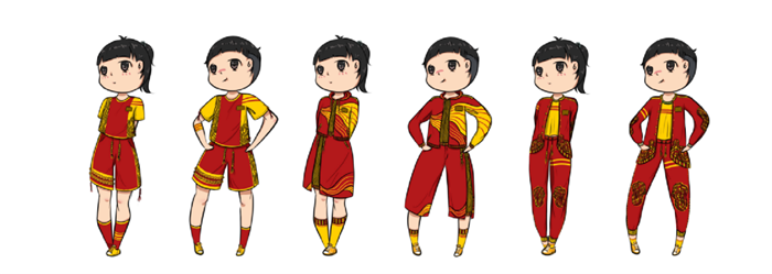 “红”,是热血的颜色,是火焰的色彩,它代表着毁灭旧事物的摧枯拉朽的强大力量,也象征着凤凰涅槃、浴火重生的顽强精神;“红”,是党旗的颜色,是国旗的色彩,红色的五星闪耀着革命军队彪炳史册的累累功绩,红色的勋章凝聚着革命先烈可歌可泣的献身精神,渗入了14亿华夏儿女、炎黄子孙满腔赤诚之爱。“红色基因”是共产党人的精神 DNA,诞生于革命年代血与火的洗礼,凝结于党和人民的血脉联系中,壮大于新时代建设中国特色社会主义事业的伟大征程里。“时代芳华”主题创作系列服装设计作品,正是以革命的“红色基因”为主要色彩元素,在继承民族传统的基础上,挖掘具有文化底蕴的中国元素的设计表达方法。其中,既有将传统服装的优点和现代时尚元素紧密结合的设计作品,更有从传承红色基因角度,让红色文化滋养孩子们幼小的心灵,帮助孩子扣好人生“第一粒扣子”的幼儿园园服的设计作品,用艺术的形式表达对祖国和党清澈的爱,为建党百年擦亮“最鲜明的革命红”。