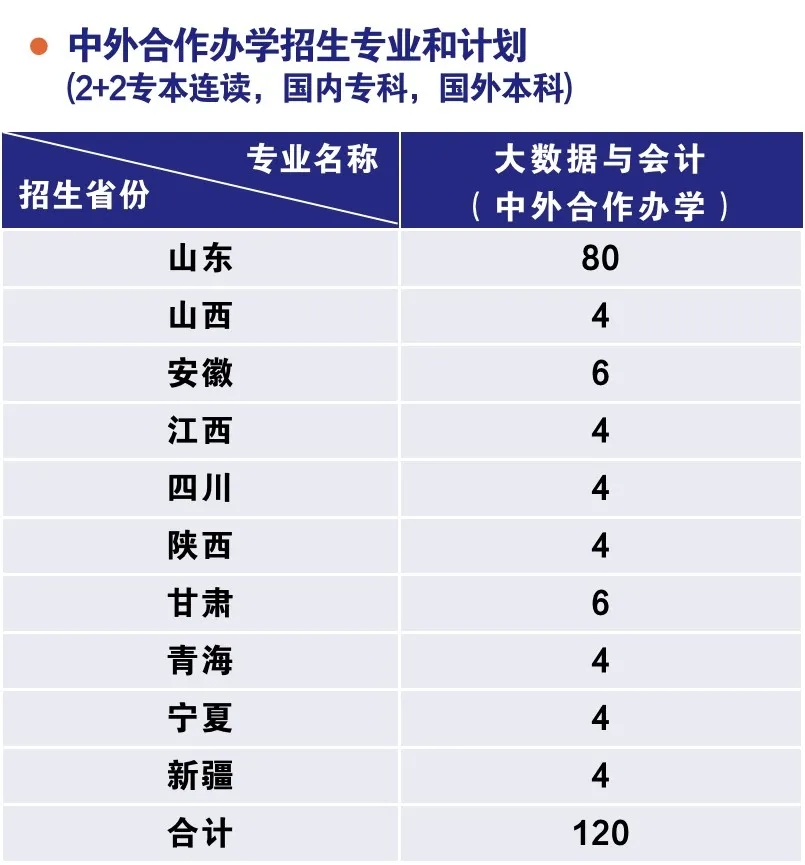 中外合作办学项目始办于2009年,是我校与澳大利亚新英格兰大学合作举办、经山东省教育厅批准的中外合作项目。采用“2+2”模式,国家统招,专科录取,国内学习两年,国外学习两年,可以获得国内专科文凭和国外本科文凭。国际交流中心电话 :0532-86666329。