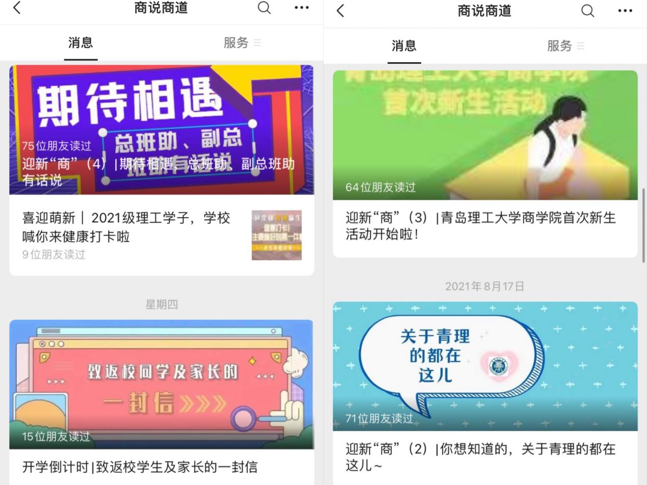 青岛理工大学商学院一直重视迎新工作,形成了以“一对一”全心服务、“点到点”爱心直通、“心贴心”联心共育为主要内容的“新心”迎新工作品牌。2021级新生开学报道准备期间,商学院利用抖音直播、微信公众号、宣传海报等融媒体矩阵打造暖“心”迎新模式,将幸福理工与温暖商院“云端”呈现给身处五湖四海的新生眼前。胶州湾畔、秋桂飘香,在金秋九月,新一批青岛理工大学学子即将带着国家的期待和家人的祝福迈入大学生涯,祝福他们能够不负韶华、努力学习,让青春之花绽放在党和人民最需要的地方!(金宝搏188入口 /姜甜甜)
