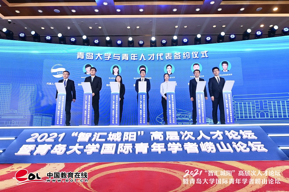 2021“智汇城阳”高层次人才论坛暨青岛大学国际青年学者崂山论坛在青岛举行。青岛大学校长夏东伟,副校长肖江南,山东省教育厅(省委教育工委)人事处(教育人才工作处)副处长(挂职)唐启和,青岛市高级专家协会秘书长殷连刚,城阳区委常委、组织部部长滕永锋,城阳区政府副区长李守林出席论坛开幕式,青岛大学各学院(部)和相关职能部门负责人参加论坛开幕式,来自十多个国家和地区以及国内知名高校各学科领域的400余位优秀青年学者在线参加开幕式。