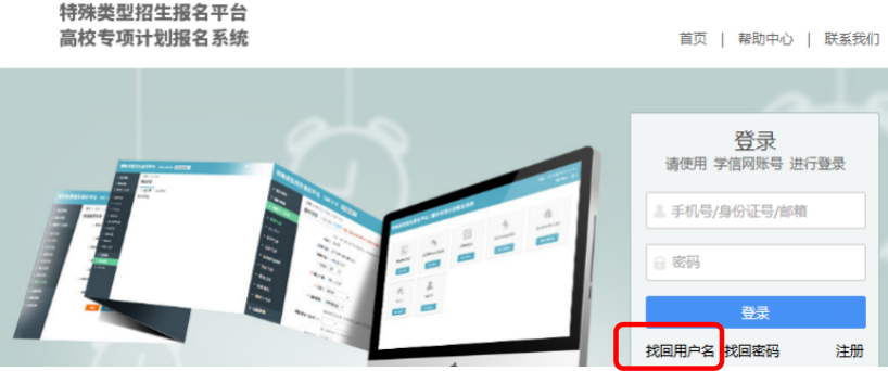 (2)如果该学生前期已经注册过账号,则会跳转到如下页面,点击“找回密码”后根据提示重置密码即可。该账号将跟随学生一生,故建议家长将用户名与密码记录下来以防后期遗忘。