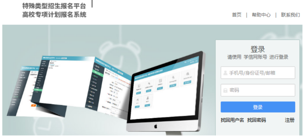 1、进入阳光高考官网的特殊类型招生报名平台,点击“报名登录”。
