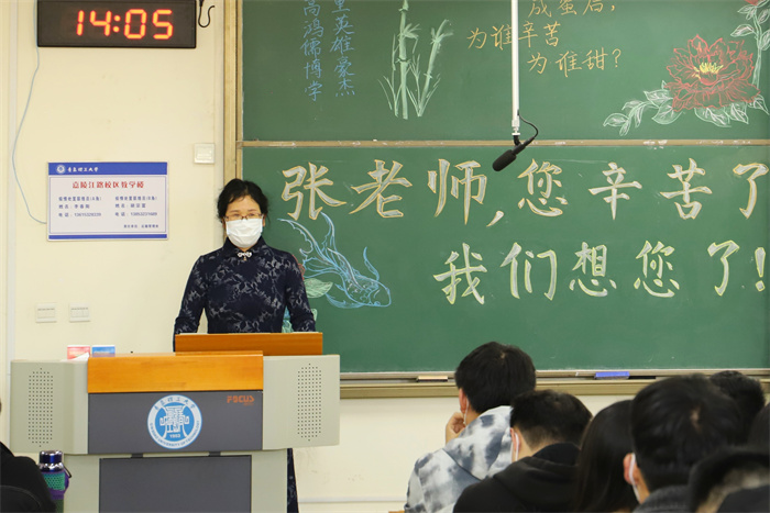 首批教育世家、青岛理工大学信息与控制工程学院张冬梅教授来到教室,“老师好!我们可以面对面交流啦!”全班同学集体起立,朗声问候、鞠躬行课礼。黑板上,还有同学们的“重相聚”寄语——“感谢您把青春献给了讲台和我们”“幸运我们的青春里有您”……张冬梅老师激动地说:“青春万般美好,却也稍纵即逝,真心地希望同学们珍惜青春时光,用奋斗书写青春的理想和芳华!”