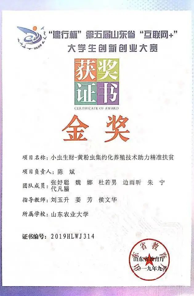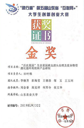 ▲“建行杯” 第五届山东省“互联网+”大学生创新创业大赛金奖
