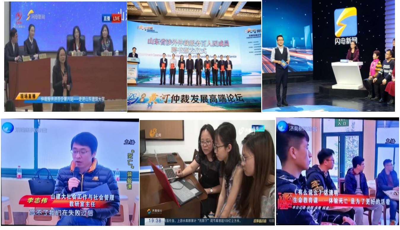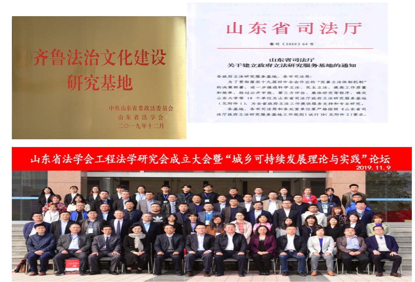 学院形成引领全省的“623”教研科研平台:“6研究中心”(城市问题、建设法学、绿色建筑政策法规、工程法、企业合规与企业拯救、涉外工程法律服务)、“2会”(市工程法学研究会和省工程法学研究会)、“3智库”(省级新型智库:城乡建设可持续发展研究院、齐鲁法治文化建设研究基地、省司法厅政府立法研究服务基地),为解决工程领域法律及社区治理等问题提供智库支持,并接受政府委托的立法咨询和规范性文件评估。学院与最高法院应用法学研究所建“工程建设与生态法治理论及实务研究基地”,山东众成清泰(济南)律师事务所建“建大业务部”,市司法局设“法律援助中心建大工作站”,市中级人民法院建“建设工程纠纷诉调中心”;在市民政局注册专业机构“济南市建达社会工作服务中心”。学院为民政、信访、济南市新旧动能转换起步区、企业等提供智库支持,积极服务社会。依托平台,学院每年平均承办1-2次省级学会会议,积极服务地方,多次被省级媒体报道,有效提升学院的研究能力和专业影响力。