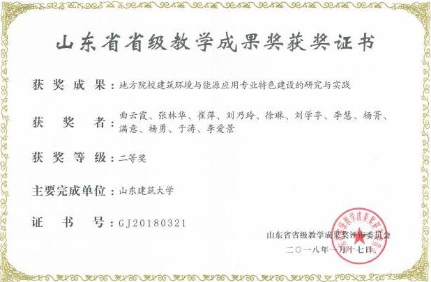 建筑环境与能源应用工程专业拥有“供热、供燃气、通风及空调工程”学术型、“人工环境工程(含供热、通风及空调)”专业学位硕士授权点,拥有省级工程技术研究中心,泰山学者特聘专家,山东省有突出贡献的中青年专家,山东省教学名师多人。获评国家一流课程1门,山东省一流课程2门,教育质量位居全国教育前列。