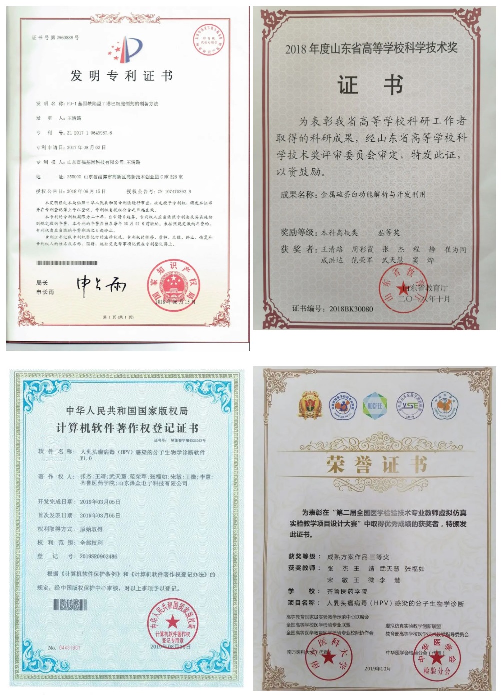 近年来,在山东省大学生医学检验技能竞赛中,获得特等奖3项,一等奖4项,二等奖9项和“最佳单项奖”的优秀成绩。获批国家级大学生创新创业训练计划项目5项,省级立项25项。