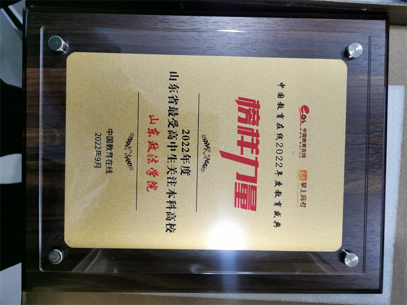 山东政法学院荣获“山东省最受高中生关注本科院校”荣誉奖项