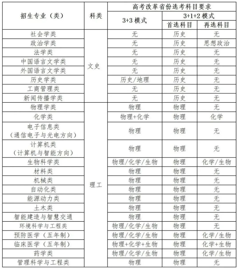 注:高考改革省份选考科目要求中,“物理+化学”表示物理和化学均须选考,“物理/化学/生物”表示物理、化学、生物三门课程中只要选考其中一门即可,其他情况同理。