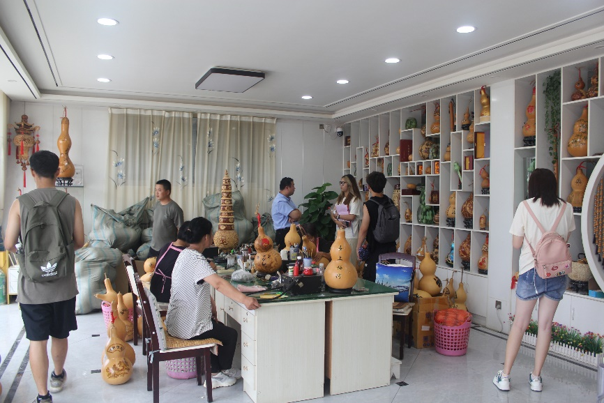 团队队员参观葫芦文化产品制作厂
