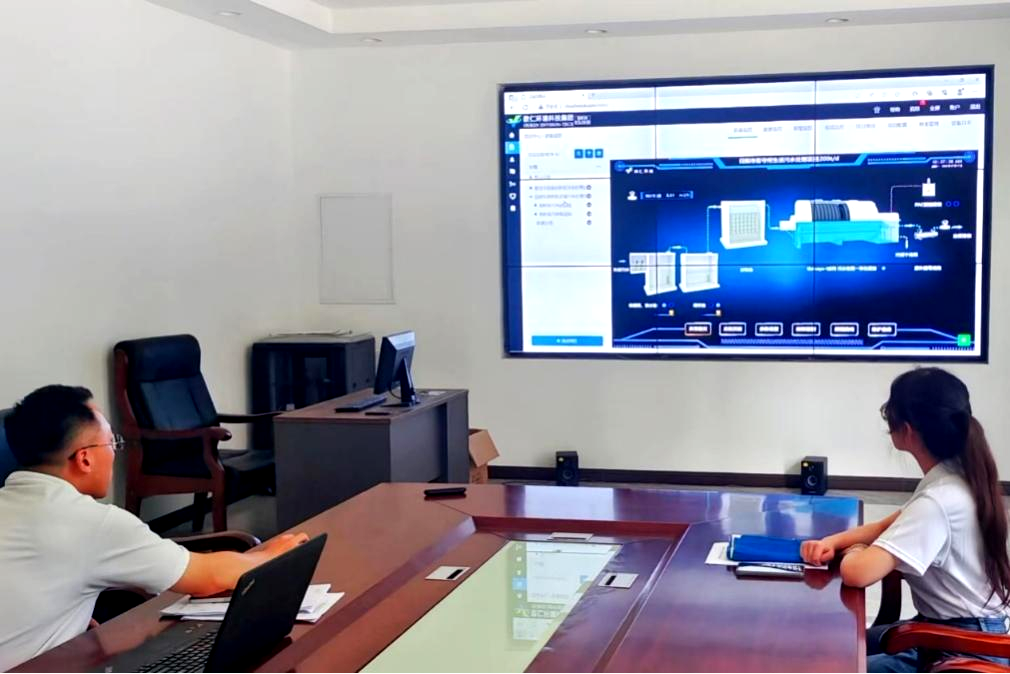 欧仁环保装备有限公司技术人员向团队介绍物联网监测平台