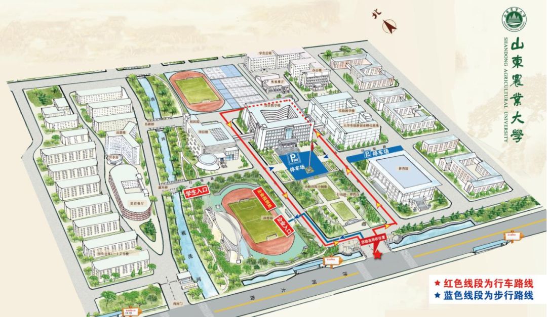(一)自驾:导航搜索“山东农业大学泮河校区”从学校南门进入;