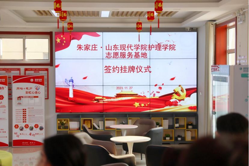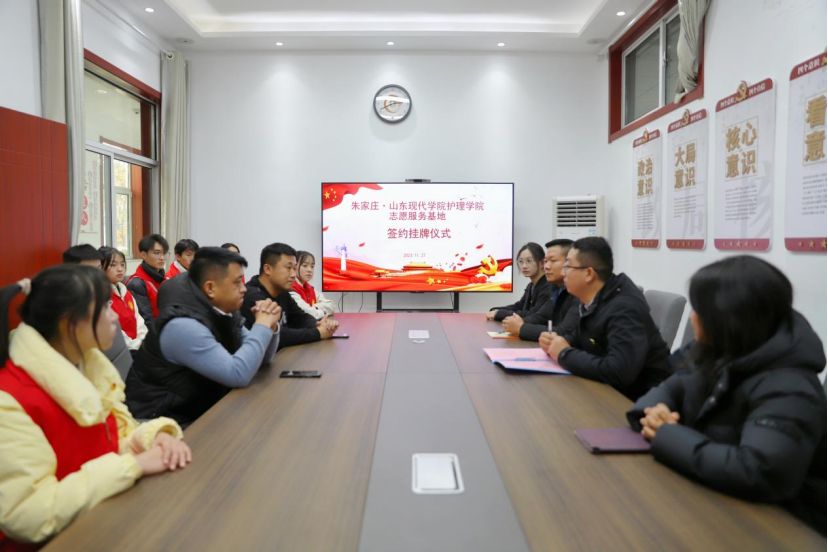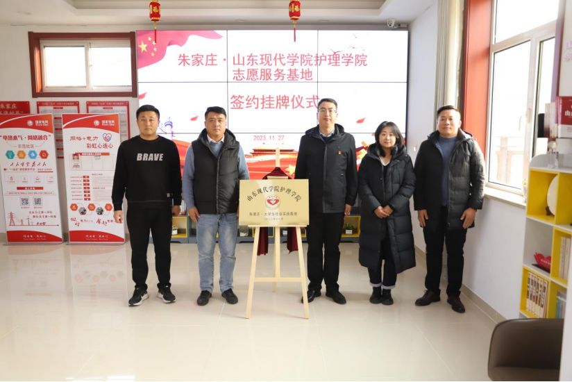 护理学院与朱家庄村达成联建协议,成立了山东现代学院护理学院大学生社会实践基地并举行揭牌挂牌仪式。