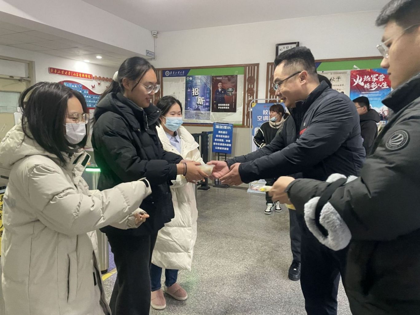 齐心联动,营造校园“家”氛围。各部门、单位在宿舍区、校门、主干道悬挂“欢迎同学们回家”等温馨条幅,营造“校即是家”的良好氛围;以学生需求为导向,调配全部小白校园公交车用于接送学生,延长营运时间,确保出行安全;后勤保障处组织人员对学生食堂进行全面清洁消毒,备好热菜热饭,以有“温度”的扎实举措迎接学子们归来。元宵节当日,各学部(院)领导、辅导员为提前返校学生送去热汤圆,与他们共度元宵佳节,传递“家”的温暖与关爱。返校当天,领导和老师们深入学生宿舍,帮助学生搬运行李、规整物品,畅谈寒假期间收获及新学期规划,为他们送去来自学部(院)和老师们的殷殷嘱托和深切关怀;“红心”“七彩烛光”等志愿者团队身穿红色蓝色马甲,接送返校学生,帮忙搬运行李,穿梭在校(院)大门和各个宿舍之间,为学生们铺设一条“暖心返校路”,打造校(院)一道亮丽“风景线”。