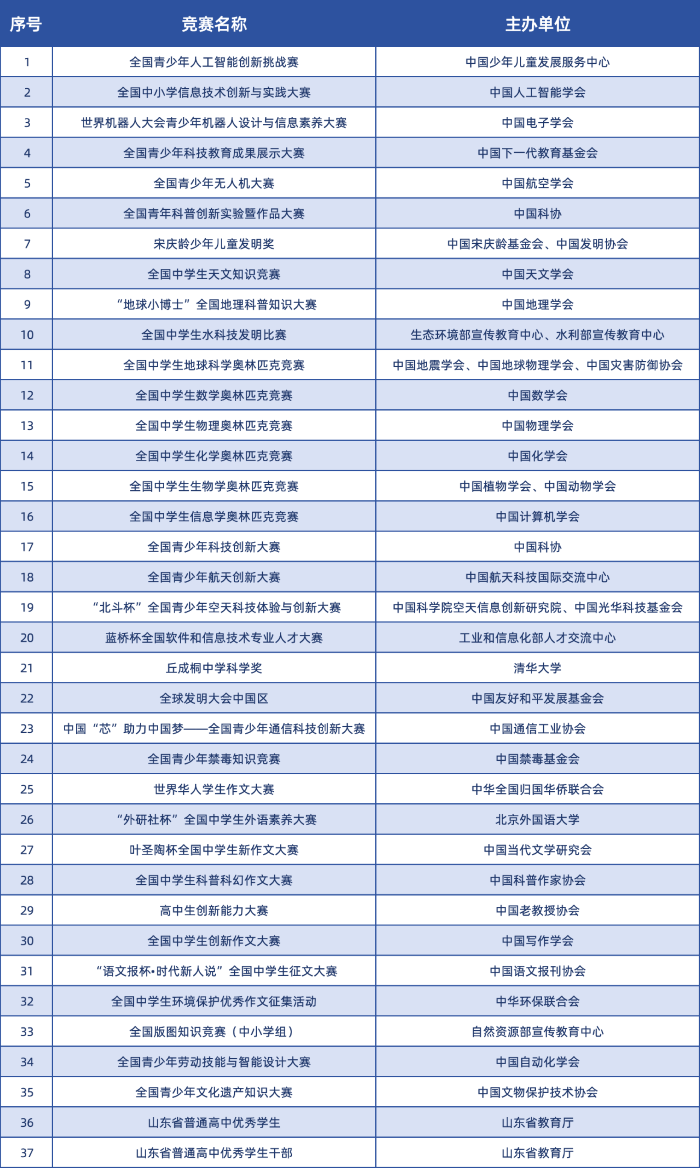 (一)一类条件:高中阶段获得以下任何一项奖励或荣誉称号(省级及以上)。