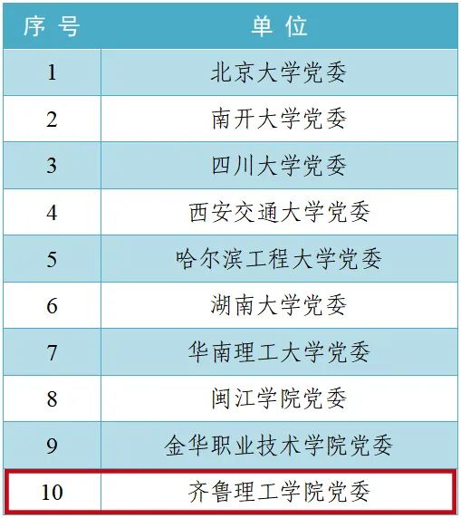 喜报!齐鲁理工学院党委入选“全国党建工作示范高校”培育创建单位