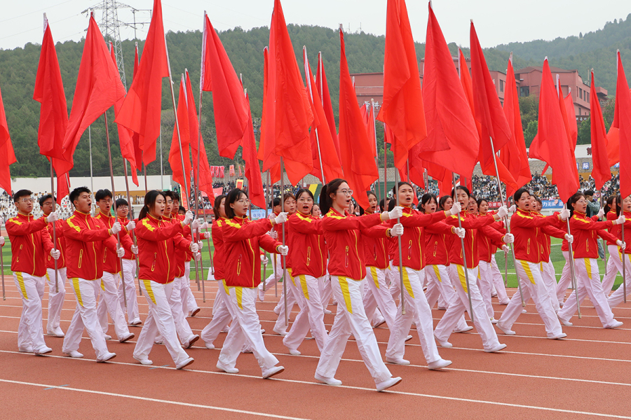 上午8时30分,金鸡岭下,彩旗飘扬,各方队整装待发。伴随着激昂奋进的《运动员进行曲》,国旗队、红旗队、花束队、各学院代表队以及校教职工代表队迈着整齐的步伐,高喊嘹亮的口号,昂首挺胸、精神抖擞地依次走过主席台,充分展示了财大师生英姿勃发的精神风貌。