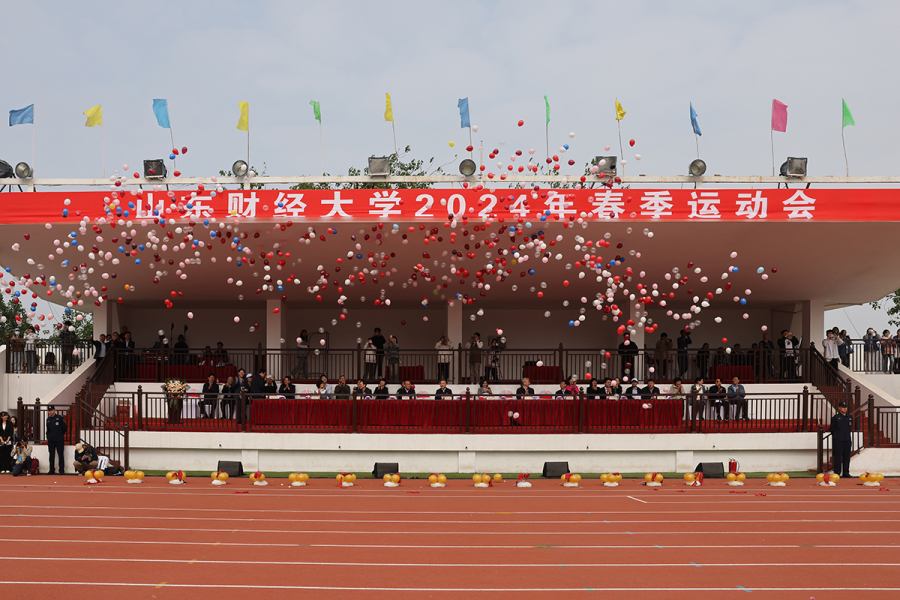 在山东财经大学全校师生喜迎第二次党代会胜利召开之际,4月29日上午,山东财经大学2024年春季运动会在舜耕校区田径场隆重开幕。