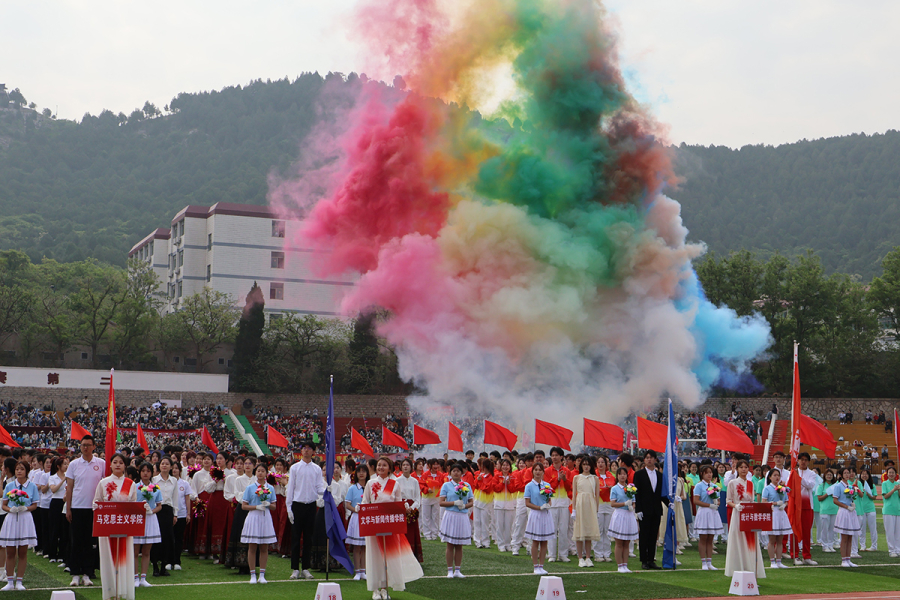 随后,洪俊杰宣布运动会开幕。伴随一声巨响,彩烟升起,彩球飘扬,欢声雷动,现场气氛达到高潮。