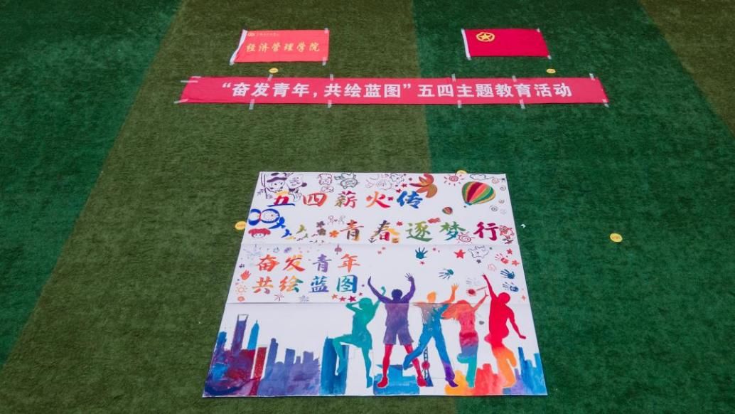 峥嵘岁月铭记在心,崭新画卷徐徐展开。经济管理学院组织开展“奋发青年,共绘蓝图”五四主题教育活动,学生手执画笔,认真创作,尽情地涂抹挥洒。“一笔一画,笔墨晕染,当画卷展现在眼前的时候,我看着象征着昂扬向上的巨幅蓝图时,同样感受着共青团振聋发聩的历史声音。”经济管理学院团委书记唐丽坤不由得感叹道。学生将满腔的爱国之情倾注笔端,融入长卷,以画传情。