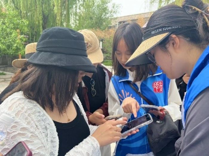抵达景区后,志愿者们被分配到景区各个岗位,协助景区工作人员迅速投入到了紧张而有序的志愿服务工作中。有的同学认真捡拾景区内的垃圾,有的同学手持网兜,仔细打捞着河里的杂物。指明路线、搬运行李、作伴聊天,志愿者们当起了游客们的“小导游”。游客与志愿者们结伴而行的场景俨然成了景区内一道亮丽的风景线,他们畅聊泉城美景、分享趣闻轶事,游客称赞连连。手机和相机都成了志愿者们最拿手的工具,面对游客们的摄影请求,志愿者们化身“专属”摄影师,“来看我,三二一”“这样很好看,保持住”,他们拿出最高超的技术为游客们定格美丽瞬间。部分志愿者在白雪楼、民俗博物馆和工作站参与讲解工作,对馆中各类展览品的制作工艺、造型艺术等展开精彩讲解。负责引导的志愿者们都认真尽责,及时准确地给予游客引导。当有不熟悉景点的游客询问一些网红景点的位置时,同学们都非常热情地引领带路,并且积极向游客分享游玩攻略。