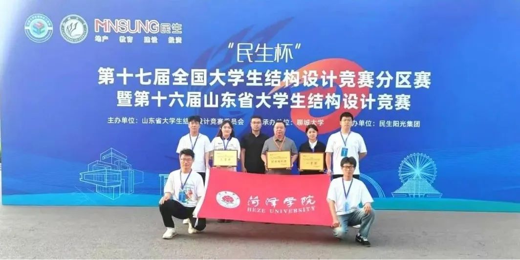 5月26日,第十七届全国大学生结构设计竞赛分区赛暨第十六届山东省大学生结构设计竞赛在聊城大学落下帷幕。本次竞赛共有来自山东大学、中国石油大学、哈尔滨工业大学(威海)等全省31所高校的61支队伍参赛。经过12个小时现场模型制作以及答辩陈述、模型加载等环节激烈比拼,菏泽学院城市建设学院教师王青元、潘赠宇共同指导的,由学生徐继发、李明昊、赵子豪组成的菏泽学院一队,张艺如、王仁贵、张涛组成的菏泽学院二队分别获得一等奖和三等奖,菏泽学院获得优秀组织奖。