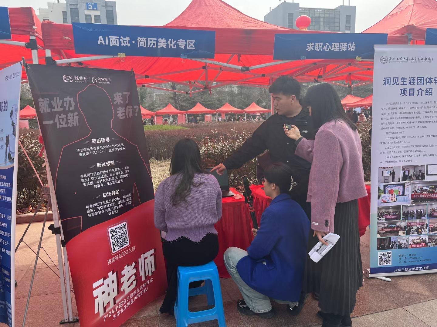 现场还设立了就业桥·AI智能简历诊断区,通过在线制作简历、简历一键生成、简历优化、自动排版等功能,短短几分钟就让现场学生轻松获得专属简历,省时又省力,连辅导员老师都表示很实用。