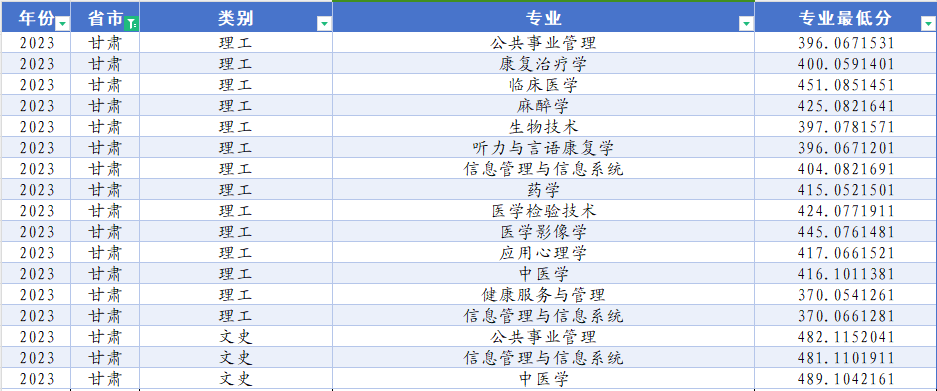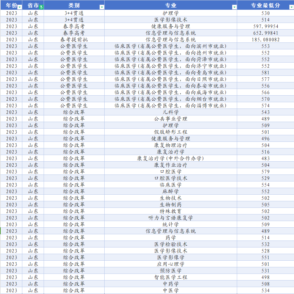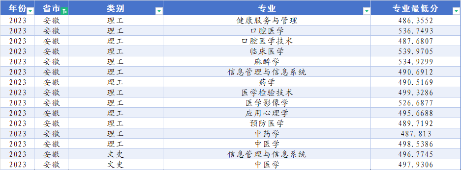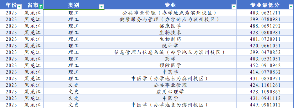 滨州医学院近3年(2021年-2023年)各省各专业录取分数供大家参考