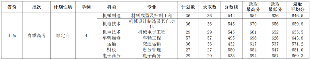 2024年山东交通学院山东省春季高考本科普通批录取批
