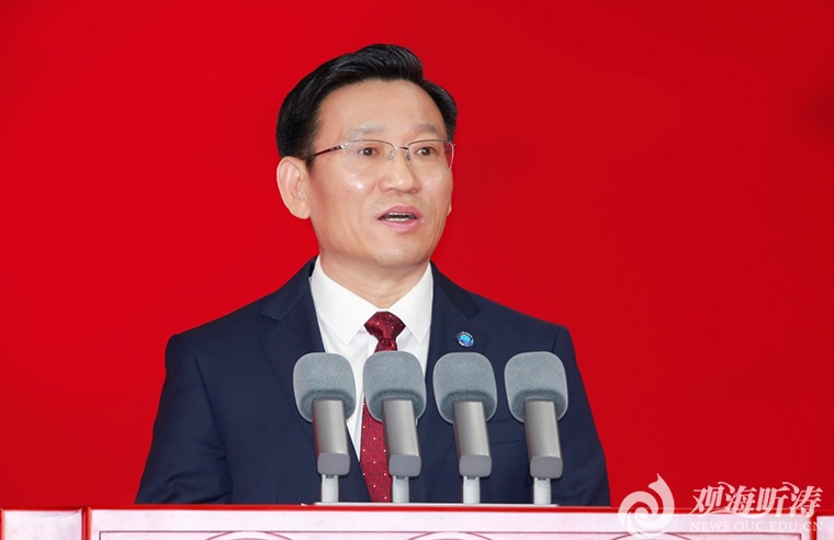 国内高校代表、山东大学校长、中国工程院院士李术才在致辞中表示,山东大学与中国海洋大学同根同源,同枝同宗,血脉相连,是志同道合的好伙伴,是相互扶持的好兄弟。山东大学将与中国海洋大学等兄弟高校一道,认真学习贯彻习近平总书记重要回信精神和全国教育大会精神,聚焦国家重大战略和区域经济社会高质量发展,相互支持,相互帮助,统筹推进教育科技人才一体化发展,着力提升拔尖创新人才自主培养质量,努力培养堪当民族复兴大任的时代新人,支撑我国高水平科技自立自强,奋力书写好服务教育强国、海洋强国建设的崭新篇章,共同为以中国式现代化全面推进强国建设民族复兴伟业不断作出新的更大贡献。