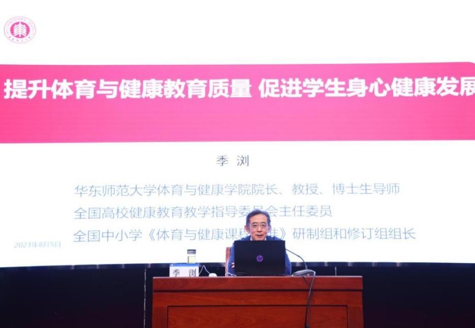 华东师范大学体育与健康学院院长,教授、博士生导师、长江学者特聘专家,第六、第七届国务院学位委员会体育学科评议组成员季浏作了题为《提升体育与健康教育质量—促进学生身心健康发展》的主旨报告。