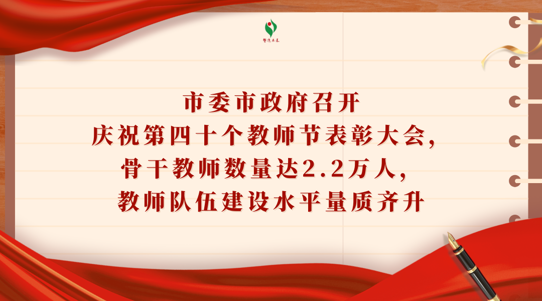 市委市政府召开庆祝第四十个教师节表彰大会,表彰15个尊师重教先进集体、76个教书育人先进集体和197名先进个人。青岛15人获评全国模范教师、全国优秀教师、全国优秀教育工作者,3个单位获评全国教育系统先进集体,9人入选首届齐鲁教育名家培育工程,55人获评第11批省特级教师、41人获评省优秀教师,全市区(市)级及以上骨干教师达2.2万人,占全市专任教师的1/6,教师队伍建设支撑教育高质量发展的基础进一步夯实。