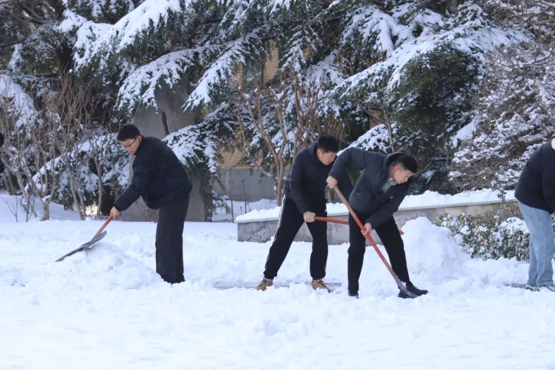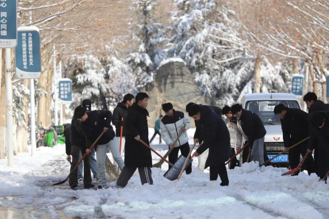 在扫雪现场,师生们分工明确,配合默契,形成了校园里一道亮丽的风景线。