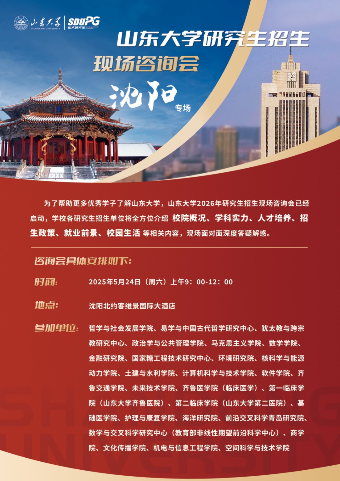 5月24日开启,山东大学2026年研究生招生宣传现场咨询会(沈阳专场)