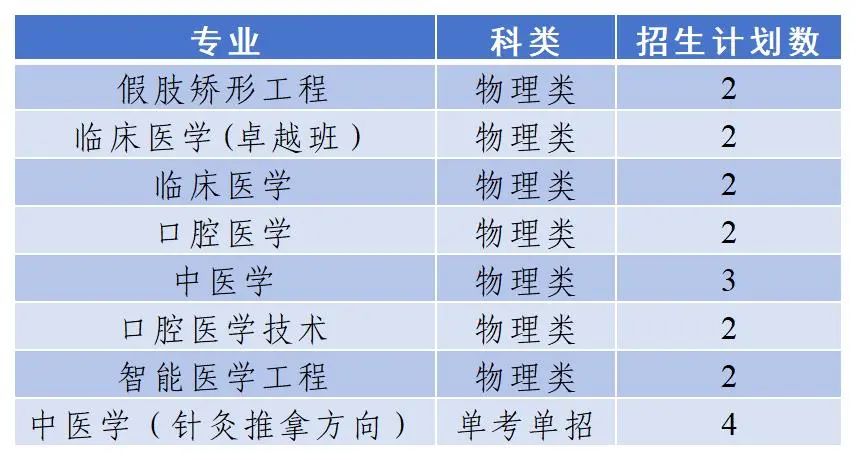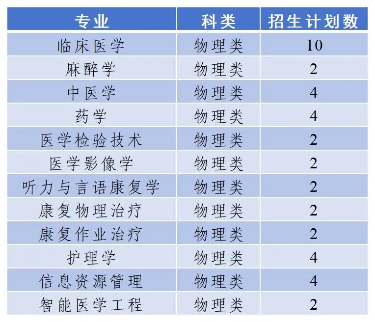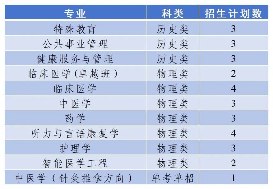 滨州医学院2025年本科招生计划3400人。其中,公费医学生6人、普通类常规批3264人、春季高考70人、残疾人单考单招60人、面向全国30个省(区、市)招生、其中山东省本科招生计划2631人、省外本科招生计划769人。
