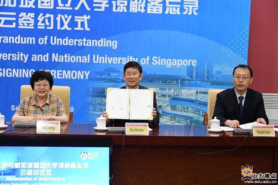 9月4日上午,山东大学与新加坡国立大学通过视频举行合作谅解备忘录暨学生联合培养协议“云签约”仪式。山东大学校长樊丽明、新加坡国立大学常务副校长Freddy Boey出席仪式并致辞。