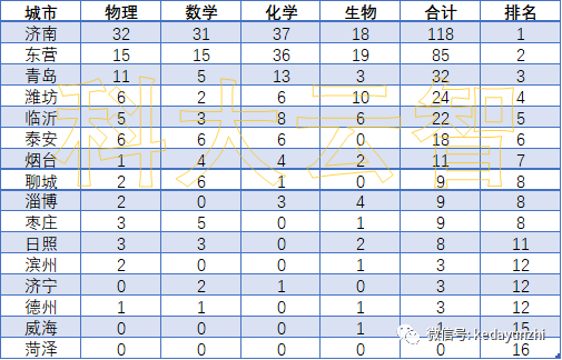 山东省各高中理科竞赛获奖排行榜,历城二中66人遥遥领先!