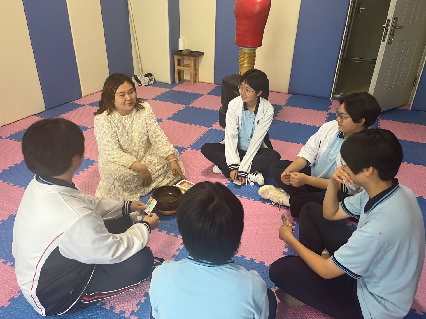 心理室给学生们带来了一场“书法与心理”课,帮助学生探究适合自己的字体。在“音乐与心理”课中,通过音乐的震动频率发出的声波,用音乐来给学生减压赋能。通过OH卡牌团体活动,借助不同的图案和文字的组合,可以激发学生们发挥创造力和想象力,亲近自己的潜意识,从自己的想法里探究到真实的心理,并且可以自我心理疗愈。在“心理彩绘曼陀罗”课上,学生可以任意发挥,用各种颜色、各种工具为曼陀罗图案涂色,在涂色过程中,放松心情,舒缓压力,释放正能量。