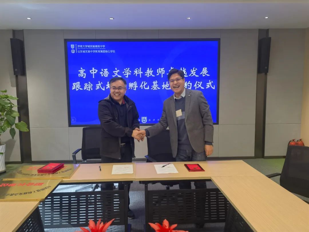 11月29日,济南大学城实验高级中学与中国智慧工程研究会教育发展与改革专业委员会举行签约仪式,合作共建高中语文学科教师卓越发展跟踪式培育孵化基地。学校副校长冯玉、教学部副主任赵绪安参加活动,本次活动由教科研部主任张继平主持。