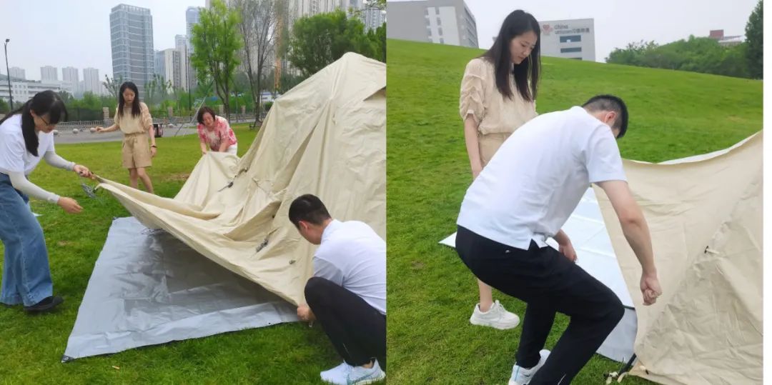 活动开始前,同学们就做足了功课,包括活动策划、物资准备、着装要求等。来到活动地点,同学、家长、老师一同搭建帐篷,铺设野餐垫,整齐摆放野餐食物,布置阅读分享以及绘画区域,共同营造浓厚的活动氛围。