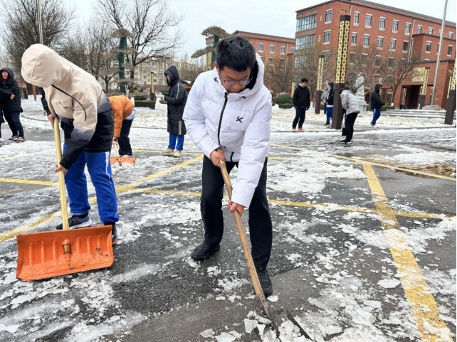 在班会上,同学们书写“解忧诗笺”,分享自己的互助故事,用温暖的故事装点班级文化墙;还分享了身边的温暖微光——讲述自己或周围人近期的善举。互动环节让同学们深刻感受到雷锋精神并非遥不可及,它蕴含在每个人的日常行为之中。风雪后,当天部分同学即热情参与到除雪志愿活动当中。