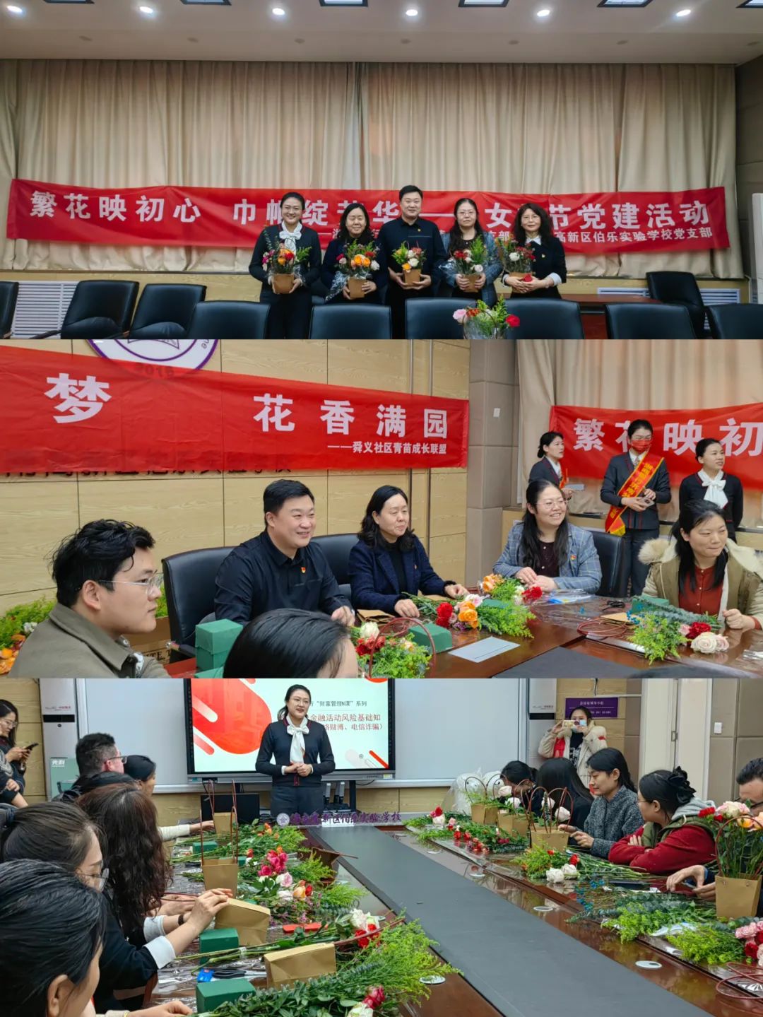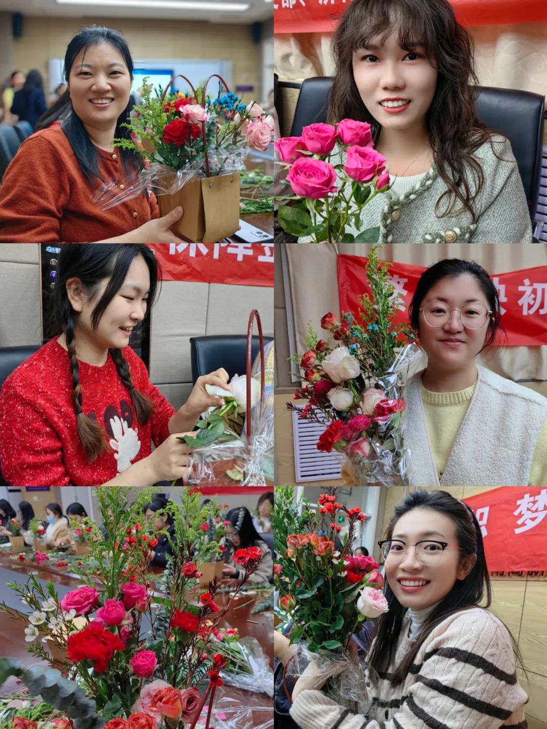 3月7日下午,午后暖阳斜照,由舜义社区、浙商银行济南分行营业部、伯乐实验学校“校社企”共同举办的“繁花映初心 巾帼绽芳华”插花活动在学校四楼会议室举行。花艺师带领老师们开启了“一花一世界”的审美之旅,从色彩搭配到意境营造,让教育智慧在指尖流转成诗。活动现场特别配备十余种花卉,玫瑰的炽烈、洋牡丹的娇柔、腊梅的写意,任君采撷组合。完成的作品可装点办公室或带回家中,愿这份芬芳延续整个春天。