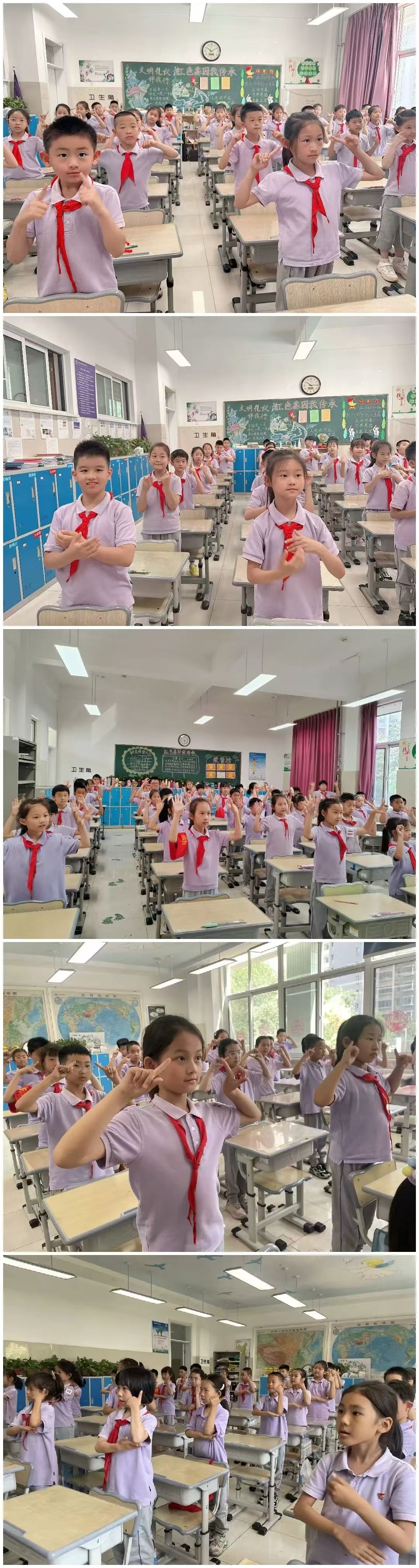 除了主题班会,二年级的同学们还学习了《光明的未来》手势舞。在欢快的音乐声中,同学们跟着视频,挥舞着小手,认真地做着每一个动作。“我要保护自己的眼睛,就像爱护自己的生命,拥有清澈明亮的双眼,走向光明的未来……”歌词中传递出的护眼理念,通过同学们灵动的手势,深深地印在了大家的脑海里。整齐划一的动作、朝气蓬勃的精神面貌,充分展现了二年级学生积极向上的学习态度。