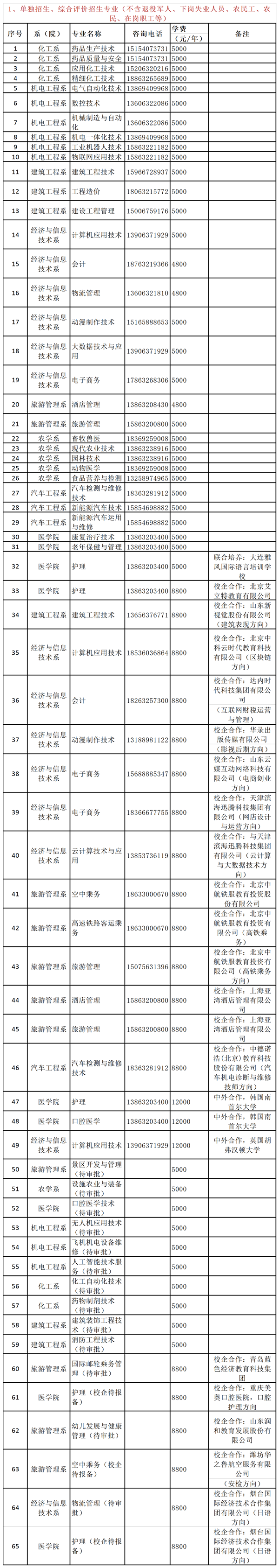 1. 单独考试招生对象:山东省中等职业学校毕业生和往届高中阶段学校毕业生(含退役军人、下岗失业人员、农民工、农民、在岗职工等)。